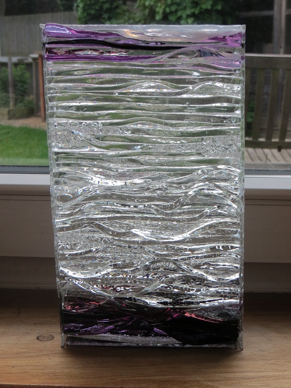 stunning textural cast block from many slices of glass of varying thickness and colour. Can be made in different colours, there may be an additional cost depending on colours chosen.